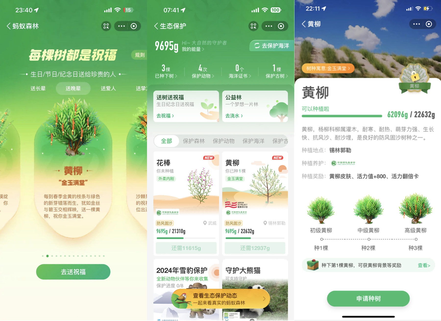 登陆蚂蚁森林即可申领黄柳,一起守护大自然