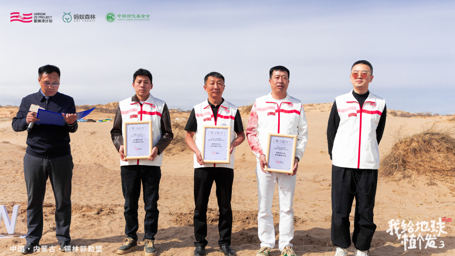 生活vlog博主(在下小苏)作为本次公益项目合伙人,亲临现场参与沙地植树项目,并在现场与林业专家包海林老师开展了一个小时的沙地直播。透过直播镜头,向屏幕前的观众真实展示锡林郭勒盟的沙地风貌,对观众完成黄柳植物科普,并向大家讲述包海林老师治沙背后的故事,让观众“走进”「治沙传承者」的治沙事迹,看他们如何用自己的恒心和毅力,栽种树苗,防沙治沙,将荒漠变成生机勃勃的草原。