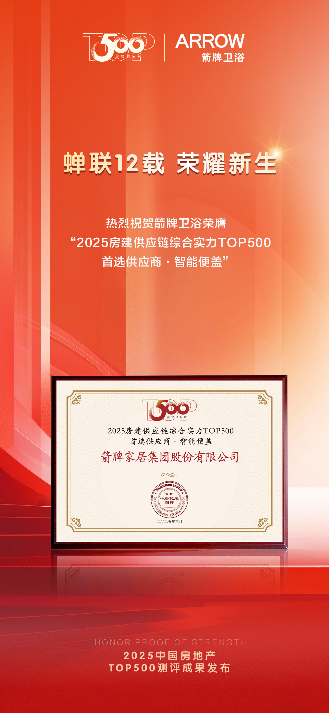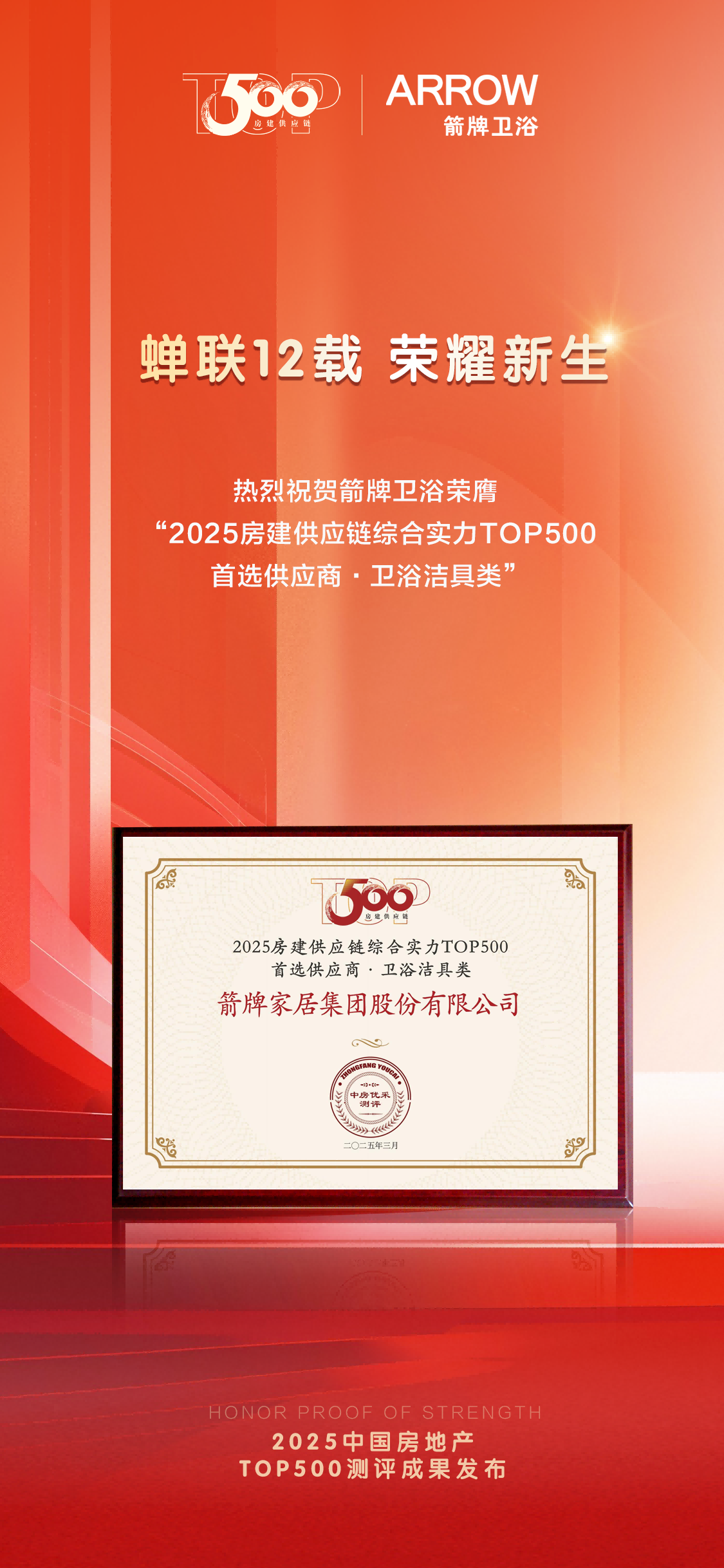 箭牌卫浴以雄厚的工程实力,入围“2025房建供应链企业综合实力TOP500-洁具卫浴类、淋浴房类、智能便盖类三项首选供应商,这不仅是业内对箭牌卫浴专业品质的认可,更是对品牌实力与市场地位显著提升的肯定,也是对箭牌卫浴以新质生产力积极探索高质量发展新路径的重要回应。