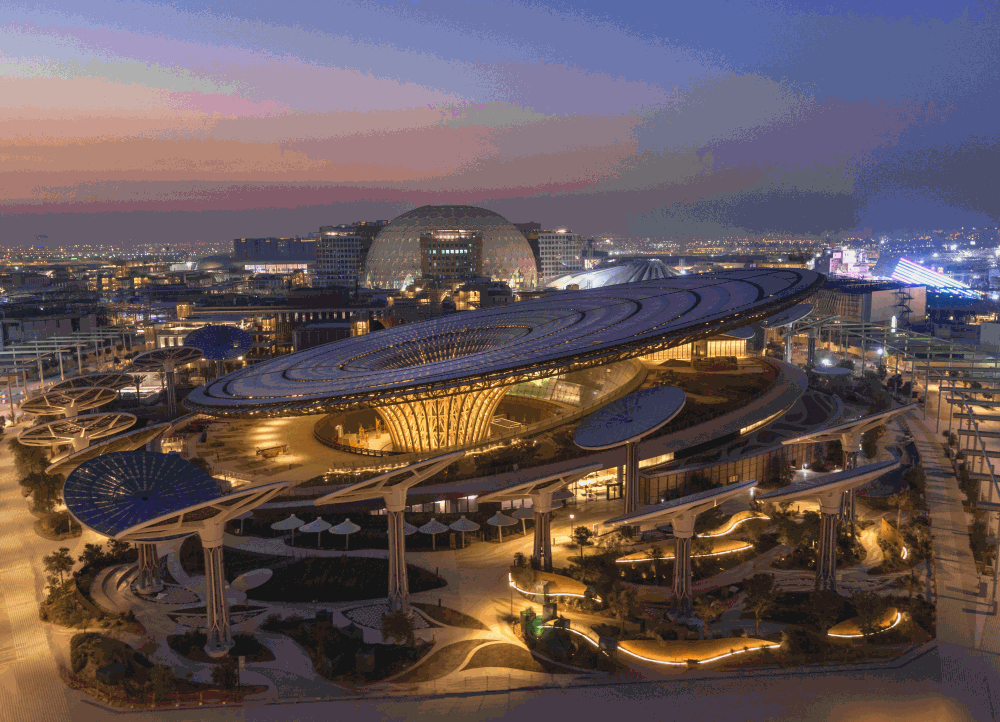 2020年迪拜世博会中国馆的主体建筑叫“华夏之光”,寓意希望和光明。中国馆建筑遵循“中西合璧、以中为主、古今交融”的设计原则,将中国元素与现代科技巧妙结合,彰显中华文化自信和大国风范。其美轮美奂的灯光秀,成为夜晚世博园最耀眼的风景!