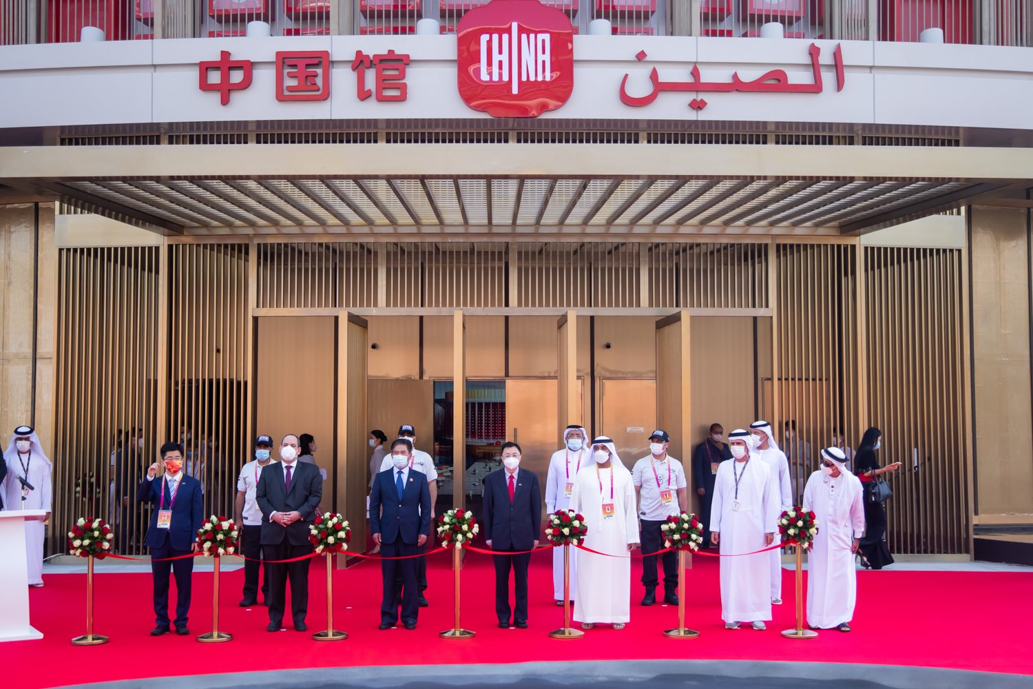 活动现场,首先播放了习近平主席为中国馆发表的视频致辞,之后部分嘉宾发表简短致辞。迪拜世博会中国馆政府总代表、中国国际贸易促进委员会副会长张慎峰,中国驻阿联酋大使倪坚,中国驻迪拜总领事李旭航,国际展览局秘书长迪米特里·科肯切斯,阿联酋航空公司主席兼董事长赛义德·阿勒马克图姆,迪拜警察局总司令阿卜杜拉·迈利等中外嘉宾悉数出席。随后,出席仪式的嘉宾为中国馆剪彩并巡馆。