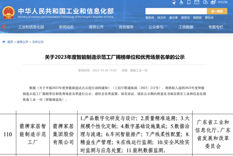 今年11月初,箭牌家居数智化成果再获国家层面认可,其智能制造示范工厂入选工信部公布的2023年度智能制造示范工厂揭榜单位名单。这一荣誉是对箭牌家居在数字化转型方面持续努力的充分肯定。该榜单评选是工信部、发改委、财政部、国资委、市场监督管理总局为贯彻落实《“十四五”智能制造发展规划》联合发起的,以揭榜挂帅方式建设一批智能制造示范工厂和智慧供应链,在各行业、各领域选出和树立一批排头兵企业,推进智能制造高质量发展。