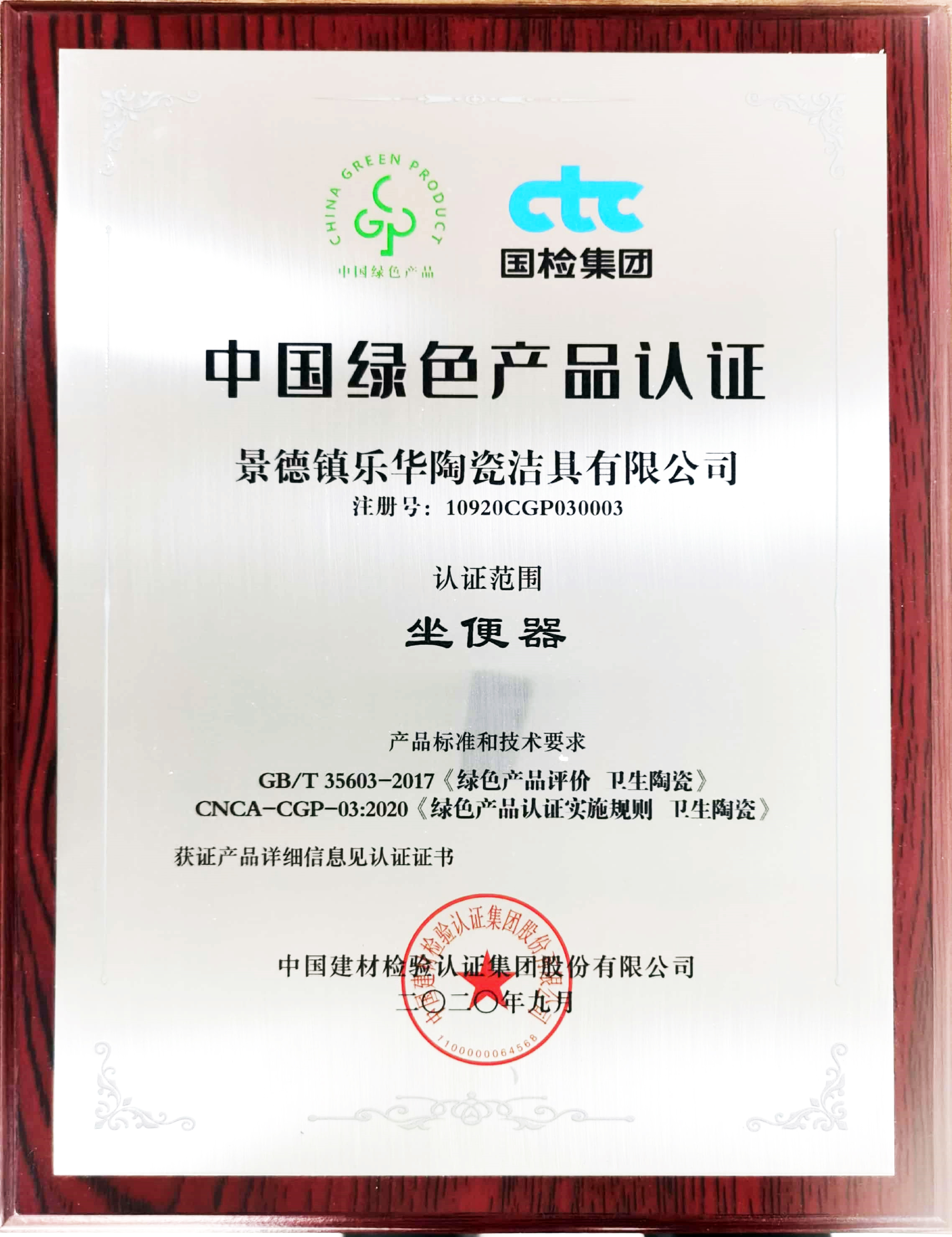 ▲中国绿色产品认证证书